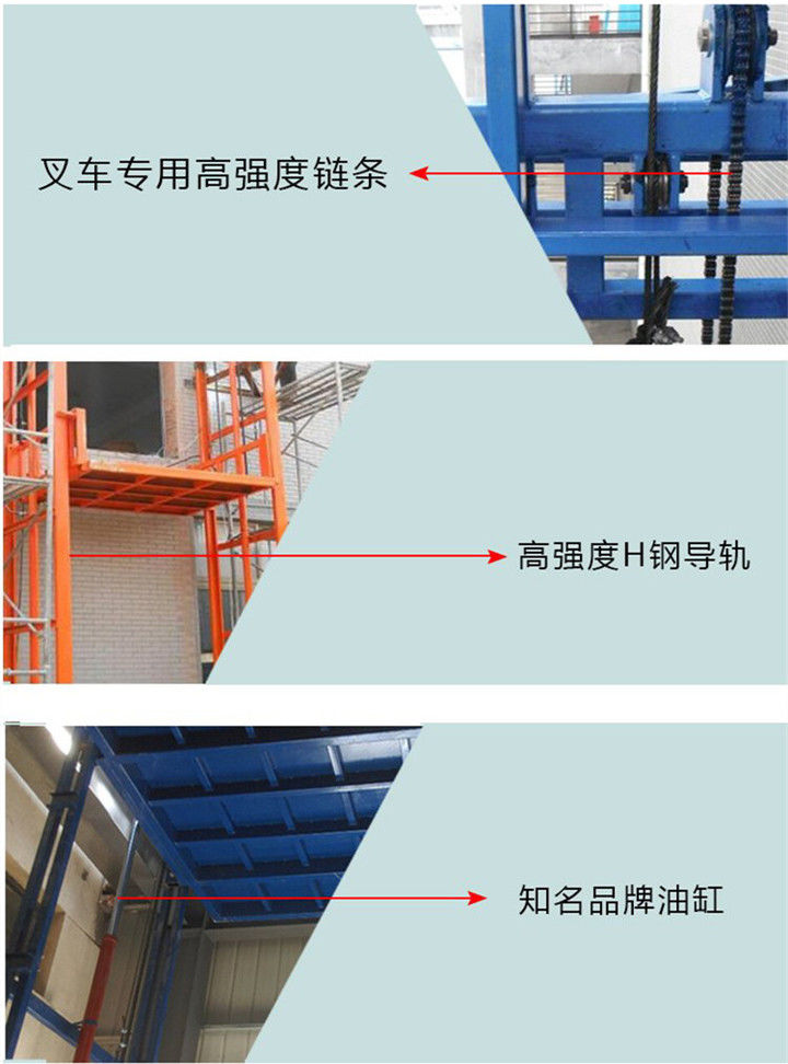 最大負荷10噸,實現多點控制,上下樓層互動互鎖,實現安全使用;為提升高空,采用旁通氣缸或雙油箱測試,運轉平穩,無噪音,維修方便,使用壽命長;手動下降,急停按鈕,方便快捷實用;坑深一般在15cm-30cm,頂高不限,可根據現場環境定制;層門可穿透,植物內外可戳開,方便節省空間;特別適合2-3層鋼廠,內外均可使用;泵站采用進口泵站,如果速度太高,使用上海人民電器,德國施耐德電氣,西門子)等電氣部件選配件,可根據客戶要求定做。