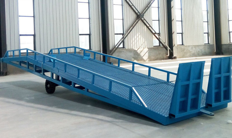 移動液壓登車橋是實現(xiàn)貨物快速裝卸的專用輔助設(shè)備,它的高度調(diào)節(jié)功能使貨車與庫房的貨臺之間架起一座橋梁,叉車等搬運車輛通過它能直接駛?cè)胴涇噧?nèi)部進行貨物的批量裝卸,僅需單人作業(yè),即可實現(xiàn)貨物的快速裝卸。移動液壓登車橋使企業(yè)減少大量勞力,提高工作效率,獲取更大經(jīng)濟效益。臺面均設(shè)計為網(wǎng)格狀鋼板,這種結(jié)構(gòu)能保證具有很好的強度,又具有防滑功能,還能方便地清掃工作臺面,使它能經(jīng)常地保持清潔、美觀。移動液壓登車橋無須外接電源,通過手搖泵做動力能輕松地在其整個調(diào)整范圍內(nèi)按50mm的倍數(shù)進行高度的調(diào)整,可以充分適應(yīng)各種不同高度的貨車。
