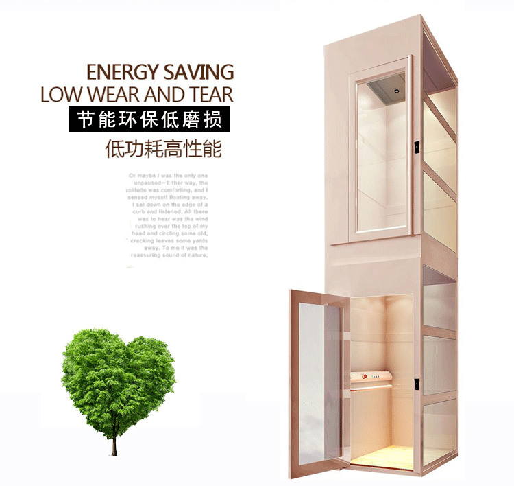 曳引家用電梯或別墅電梯:井道及地坑、轎廂、層站部分;主要部件:曳引系統(tǒng)、導(dǎo)向系統(tǒng)、門系統(tǒng)、轎廂、重量平衡系統(tǒng)、電器控制系統(tǒng)、安全保護(hù)系統(tǒng),電氣方面的安全保護(hù)在電梯的各個(gè)運(yùn)行環(huán)節(jié)都有,這種電梯同小區(qū)電梯相同。安靜平穩(wěn)、價(jià)格經(jīng)濟(jì)、乘坐舒適,方便殘疾人和老年人使用豪華高檔的家居電梯。