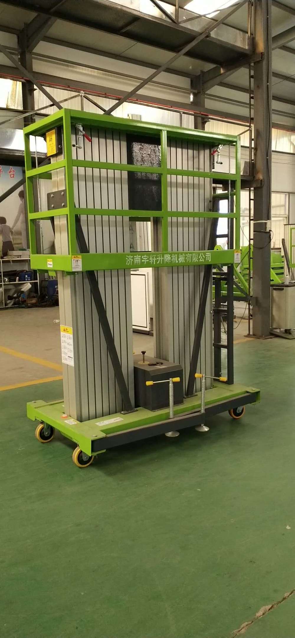 宇軒鋁合金升降機(jī)主要特點(diǎn):它的工作臺(tái)面和載重量比較大,升降高度高,穩(wěn)定性好,是路燈維修、行車維修、高空設(shè)備安裝維修、廠房頂部照明安裝維修、高...