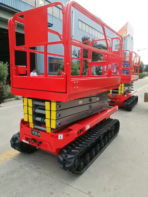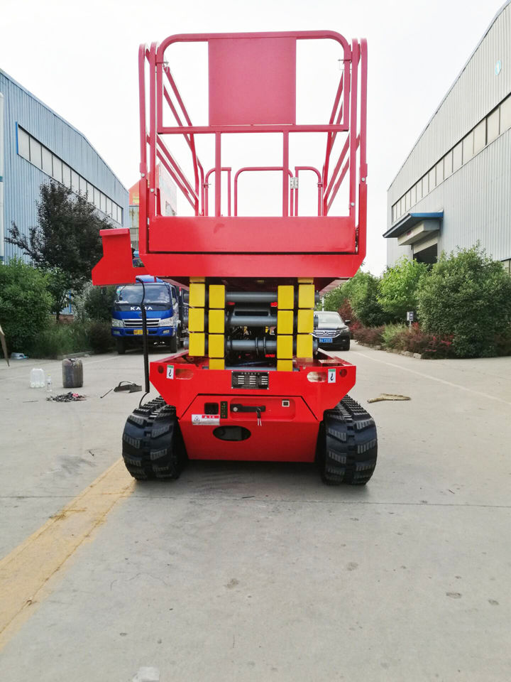 履帶式液壓升降平臺采用加重底盤,工作時,不需要支腿,在升降機升起后,不需要不把升降機收起即可行走,極大的提高了工作效率,同時,它的履帶式車輪,增加了與大地接觸的面積,在野外泥濘道路上也可行走和工作,是石油勘探、野站部隊通信線路安裝施工等野外高空作業的理想設備。