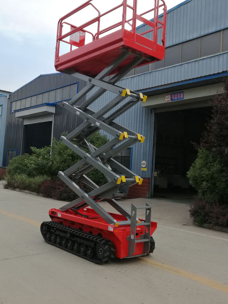 履帶式液壓升降機是我公司專為野外復雜路況下高空作業設計的一種升降平臺,它適應環境能力特別強,能在野外無電源,路況復雜的情況下進行作業使用。采用履帶式車輪,加重底盤,由柴油發動機驅動升降設備行走,蓄電池做控制和升降電源,通過控制按鈕控制驅升降機上升和下降,也可以用柴油發動機做升降動力通過手動液壓操作桿控制升降機上升、下降,蓄電池由外接電源充電或通過柴油發動機帶動發電機充電。