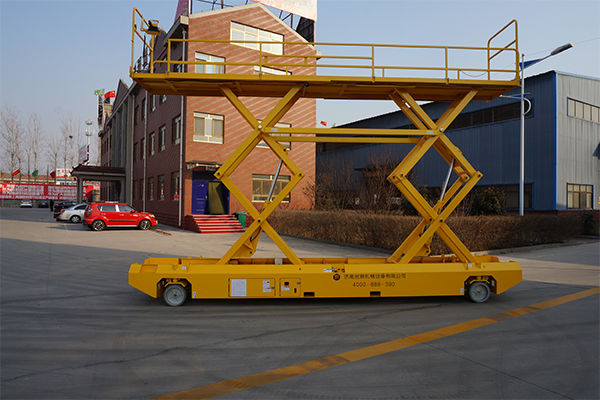 自行式液壓升降平臺的主要特點是:使用人員可以不用下升降臺就可控制機械升降、行走,可在臺面上控制設備行駛到其他的工作地點。設備自身具有行走及轉向驅動功能,不需人工牽引,不需外接電源。移動靈活方便,令高空作業更方便快捷,是現代企業高效安全生產之 理想高空作業設備。