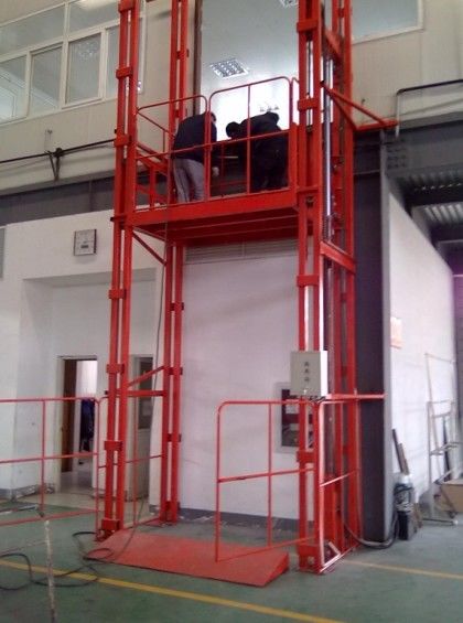 導軌式升降機是一種非剪叉式液壓升降機械設備。用于二三層工業廠房、倉庫、酒樓樓層間的貨物傳輸。最低高度在150-300mm,尤其適合不能開挖地坑的工作場所。并且無須上部吊點,形式多樣化(單柱,雙柱,四柱)。設備運行平穩,導軌式升降機的導軌一般為槽鋼、H鋼,方管焊接制成,操作簡單可靠,貨物傳輸經濟便捷。